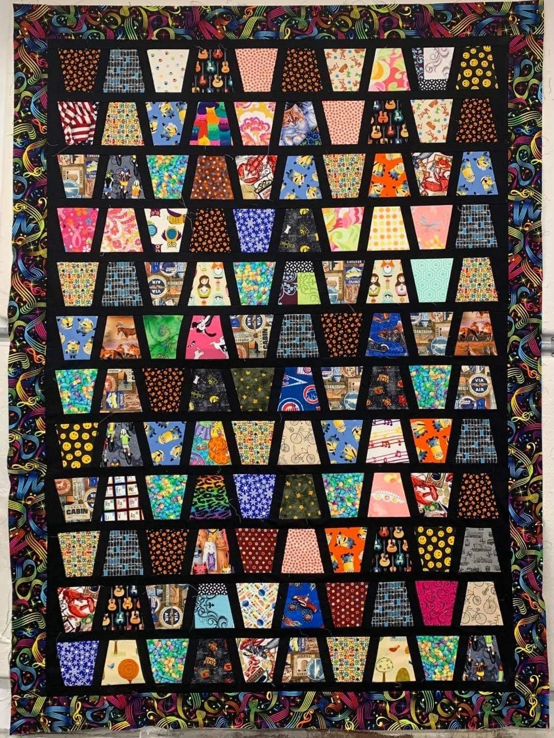A potato chip quilt made from 1,152 scrap rectangles sized 2.5" x 4.5"