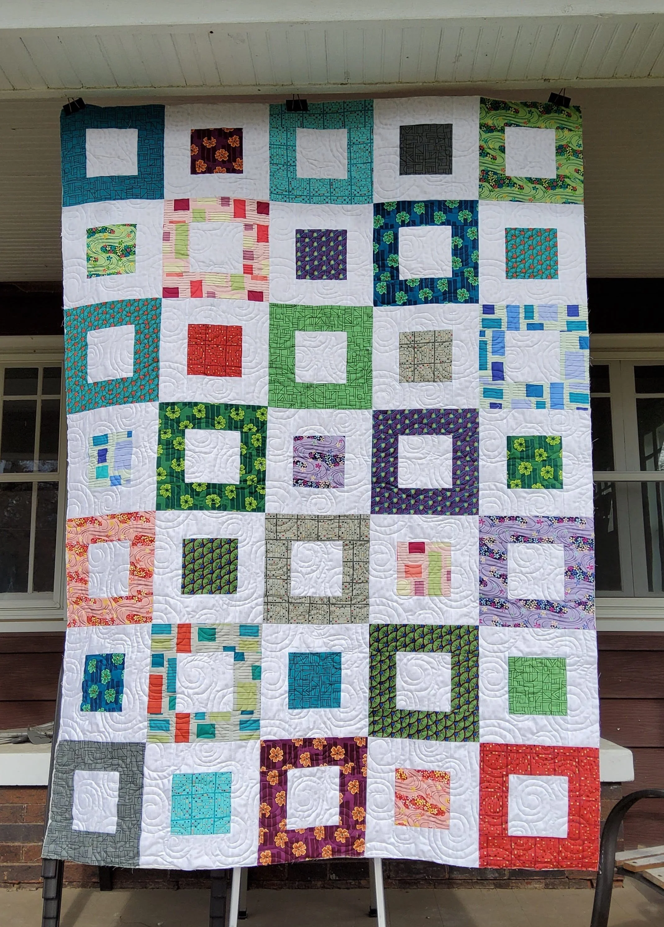 A potato chip quilt made from 2.5" x 4.5" rectangle scraps.